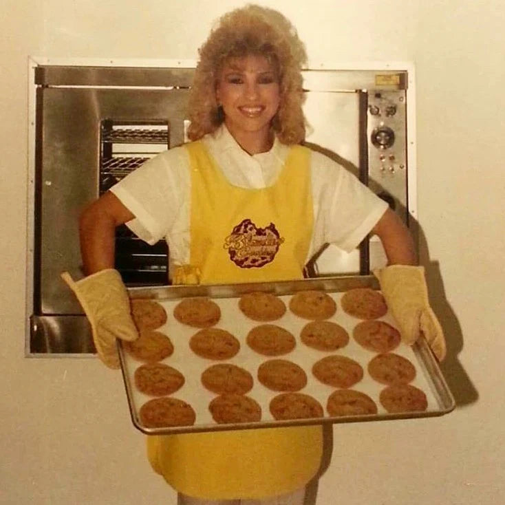 Simon is headquartered in Indianapolis, just 1 hour away from their hometown. Blondie called repeatedly to ask for a meeting. One of the leasing representatives finally agreed to meet with them. Blondie and her husband baked their hearts out and set off the next morning in their trusty Honda Civic to meet with Simon Property Group. The leasing representative liked Blondie’s cookies so much that the very next day, she received a phone call that would change her life. Simon Property Group was going to take a chance on her with nothing more than a beer-can collection, a ten-speed bicycle, and Honda Civic to their names. Blondie opened her very first cookie store in the Markland Mall located in Kokomo, Indiana. She named her first store Blondie’s Cookies.